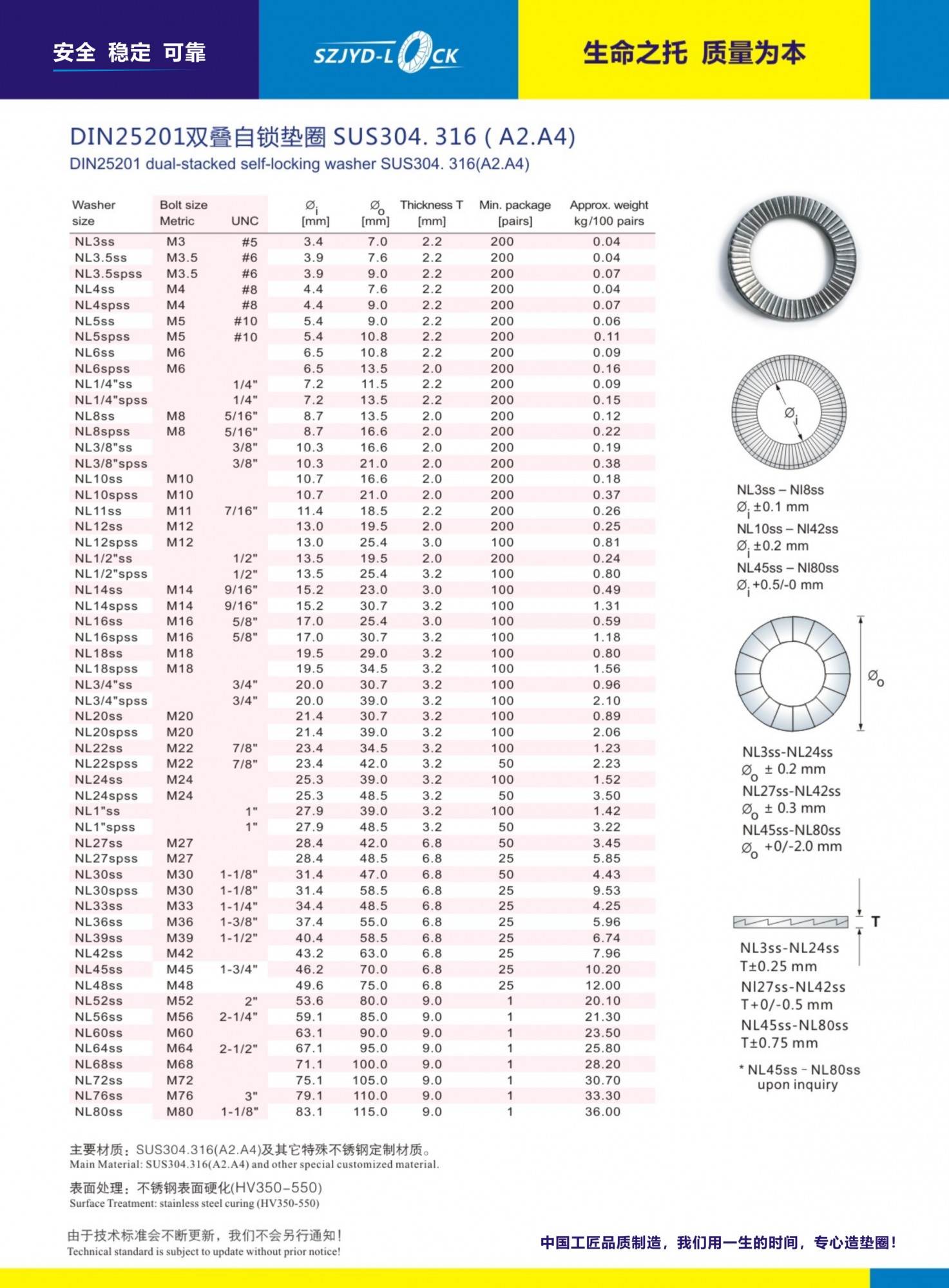 表面全部清洗拋光處理; 雙疊自鎖墊圈的使用:墊圈兩個(gè)大斜齒面成對(duì)粘合,目的是便於安裝和防止錯(cuò)誤用!墊圈的硬度必須高于螺栓的硬度!SZJYD-LOCK墊圈全部經(jīng)過(guò)DIN65151橫向振動(dòng)測(cè)試可以達(dá)到200萬(wàn)測(cè)試、其衰減率不低于70%!