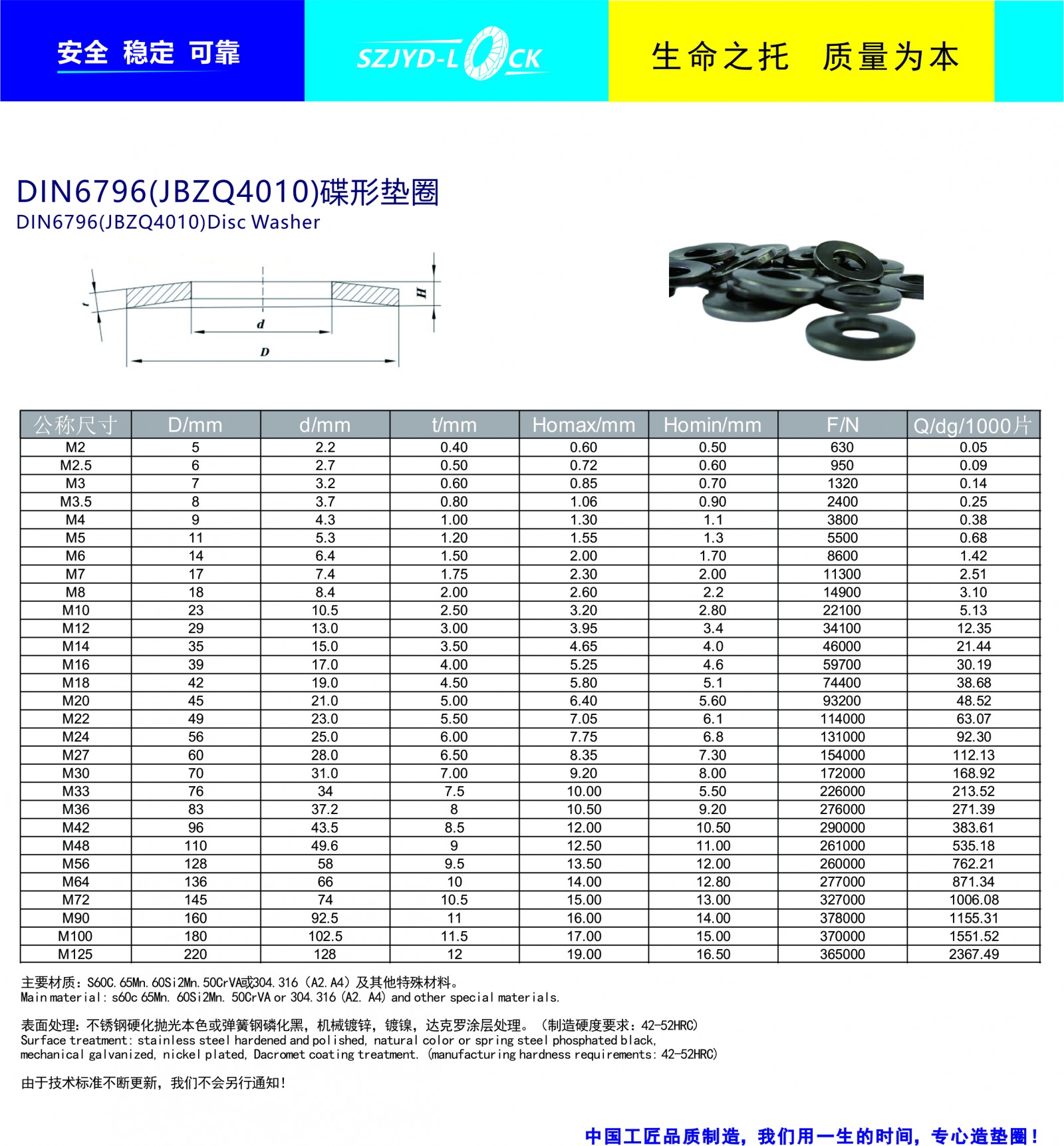 制造執(zhí)行標(biāo)準(zhǔn):符合DIN6796標(biāo)準(zhǔn)。規(guī)格:M2-M125型號,也可提供訂制服務(wù)主要材質(zhì)有SUS304.SUS316.SUS630.SUS631,彈性硬化拋光處理!