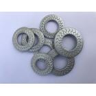 SKM鎖緊墊圈預(yù)緊力防松效果比碟形墊圈要好、在歐洲鐵路機(jī)車領(lǐng)域被大量采用、表面齒紋增加了防松系數(shù)!目前齒紋設(shè)